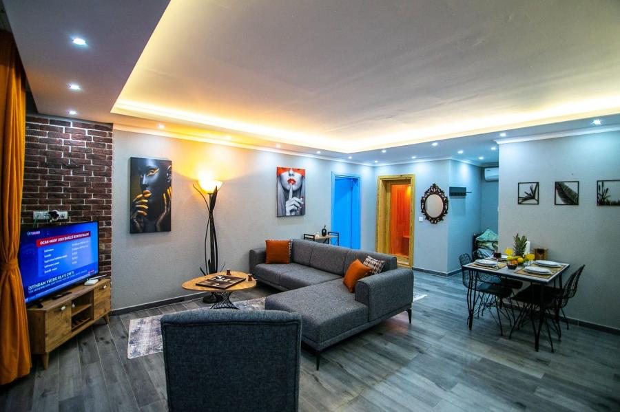 Villamız tek yatak odalı olup, içerisinde çift kişilik yatak, banyo, jakuzi ve klima bulunmaktadır. Salon içerisinde ise mutfak, klima, televizyon ve oturma grubu yer almaktadır.